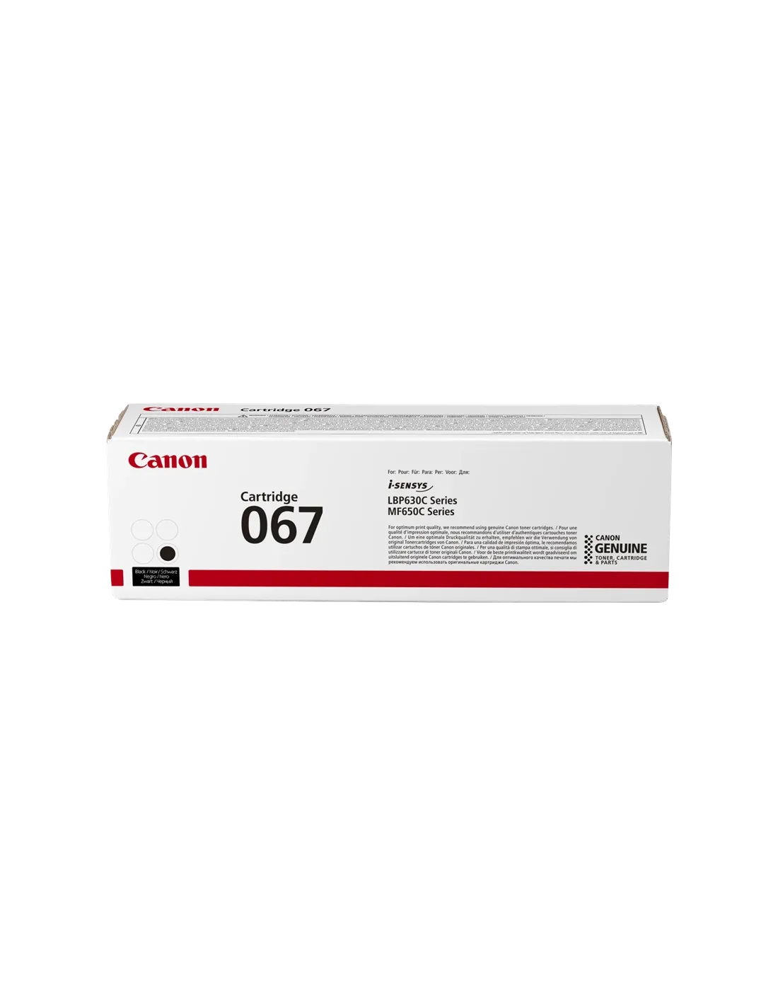 Ce toner noir Canon 067, référence 5102C002, est un consommable d'impression original conçu pour offrir des résultats d'impression de haute qualité et constants. Il est spécialement formulé pour garantir la compatibilité et la performance optimale avec une sélection d'imprimantes Canon, assurant ainsi la préservation de la garantie de votre appareil et la netteté de vos documents.