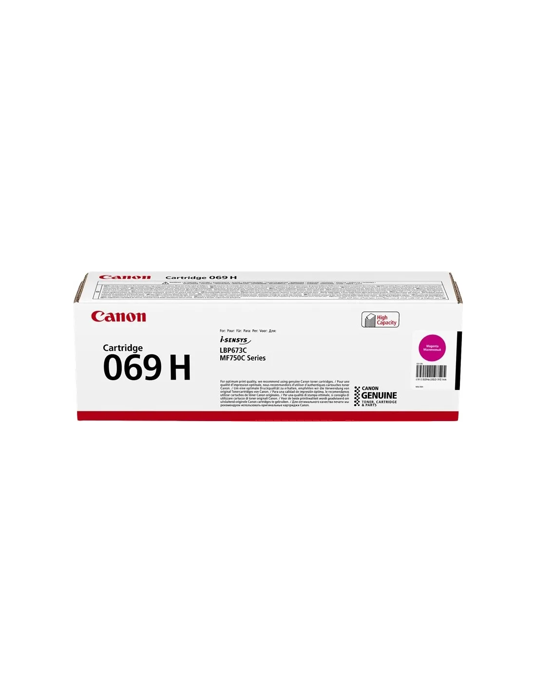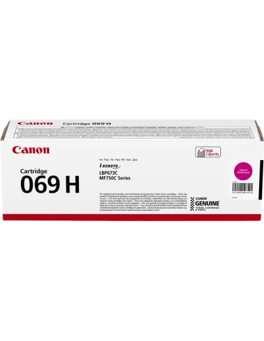 Ce toner Canon 069H magenta, référence 5096C002, est un consommable d'impression original conçu pour offrir une qualité d'impression irréprochable. Sa fabrication d'origine garantit une compatibilité parfaite avec votre imprimante Canon, assurant ainsi une préservation optimale de la garantie de votre appareil et une restitution fidèle des couleurs. Avec une capacité de 5 500 pages, il répond aux besoins des environnements bureautiques les plus exigeants en termes de volume d'impression.
