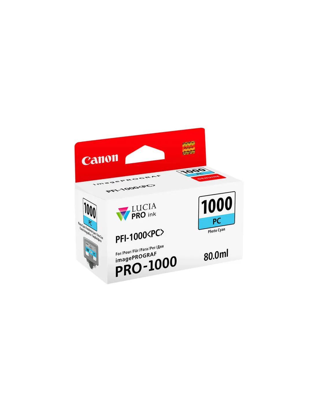 L'emploi de consommables d'origine Canon est essentiel pour maintenir la garantie de votre imprimante. Cette cartouche PFI-1000 Photo Cyan respecte les spécifications constructeur, vous assurant une tranquillité d'esprit quant à la couverture de votre appareil en cas de besoin.