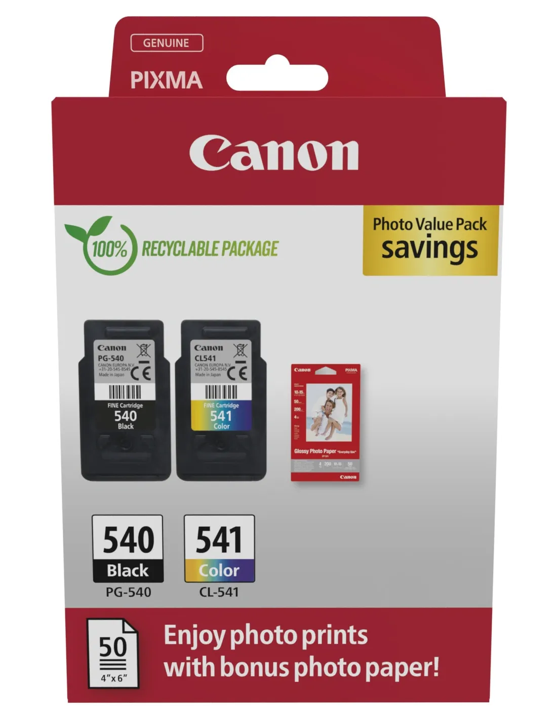 - Conditionnement : 1x Cartouche d'encre noire PG-540, 1x Cartouche d'encre couleur CL-541, 50 feuilles de papier photo.
