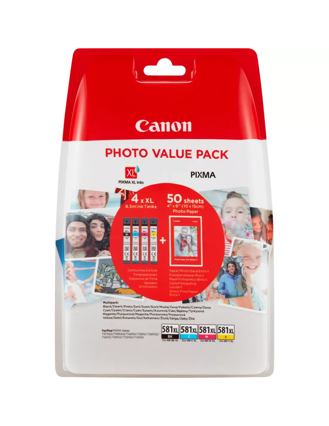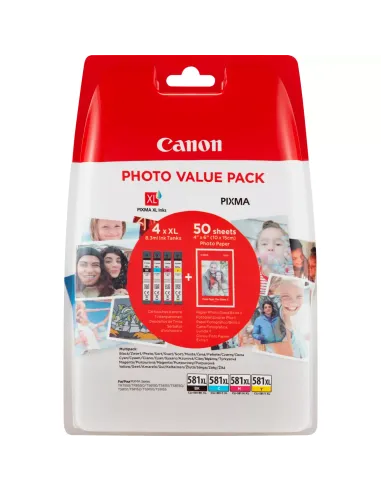 CANON CLI581XL - 2052C004 - 2052C006 - Pack de 4 Cartouches + 50 feuilles de papier photo