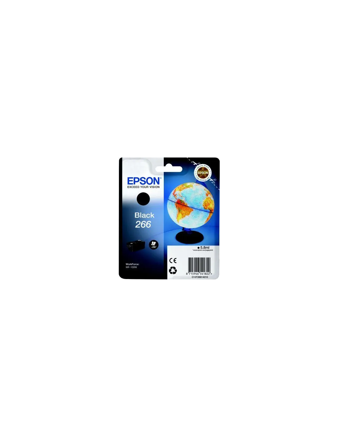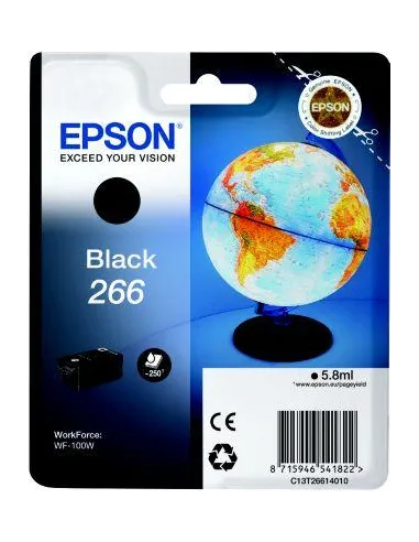 Cette cartouche d'encre noire originale Epson T266, référence C13T26614010, est conçue pour offrir des impressions nettes et précises à votre imprimante Epson WorkForce WF-100W. Avec une capacité de 250 pages, elle garantit une utilisation prolongée et une qualité d'impression constante pour tous vos documents.