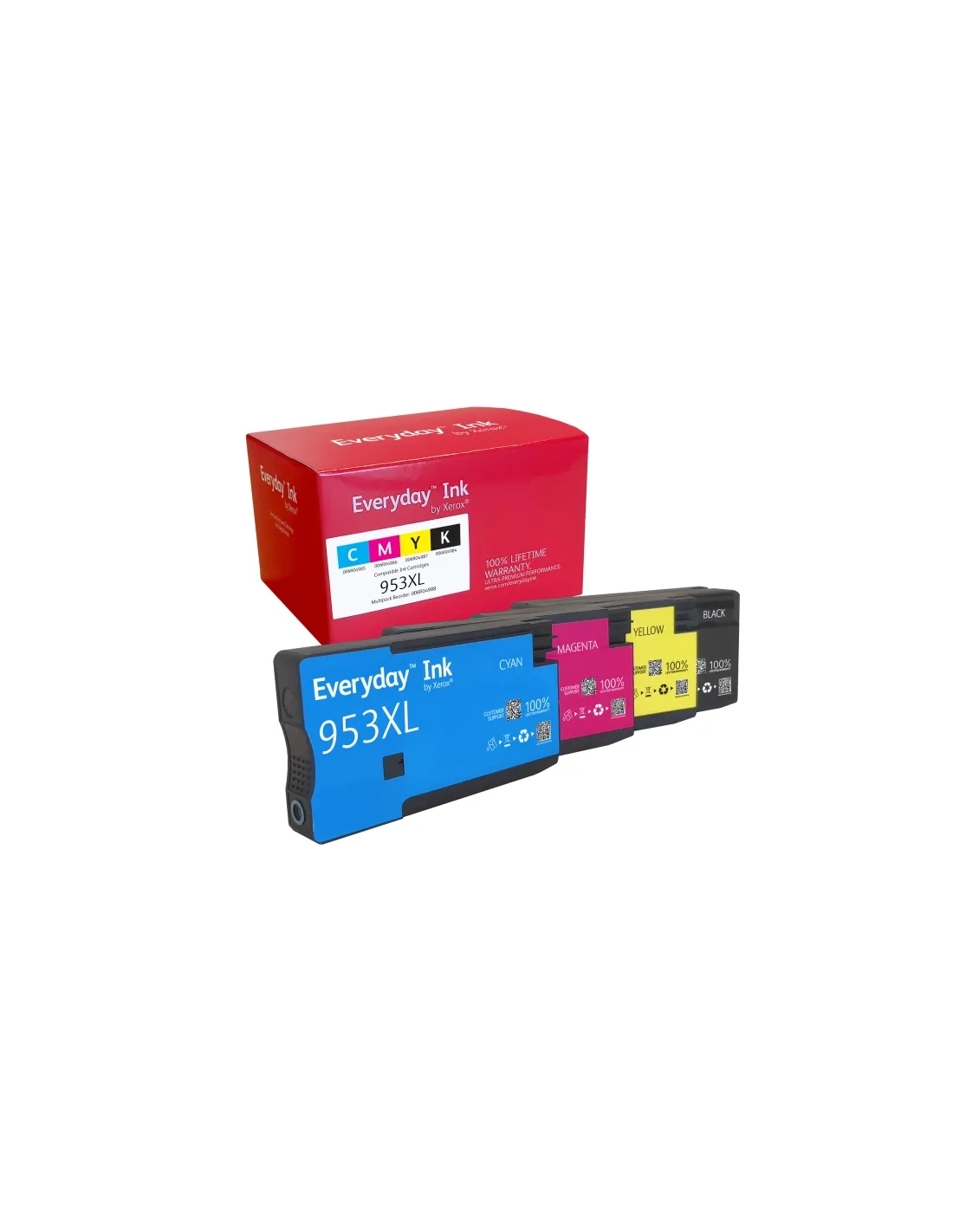 Imprimez vos documents professionnels et scolaires avec assurance grâce au Pack de 4 Cartouches d'Encre Remanufacturées Xerox Everyday HP 953XL.